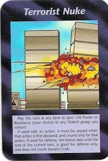 Em 1990, Steve Jackson, inventor de RPGs, estava planejando seu mais novo jogo, que chamaria de “Illuminati: A Nova Ordem Mundial”, ou “INWO”, da abreviação em inglês. Dizem que Jackson é um ex-Illuminati, que supostamente conseguiu se desvincular da sociedade sem ser morto e que arrependido decidiu contar ao mundo sobre os planos Illuminatis. Como todas as mídias são controladas por eles, segundo o que conta no jogo, Steve concluiu que a única maneira de escapar seria criar Jogo de Tabuleiro. Assim, conta a teoria da conspiração, surgiu o jogo dos Illuminatis – Illuminati New World Order (também existe uma versão no qual diz que Jackson era um hacker chamado Pranck e hackeou os planos de um dos “chefes”). Claro que tudo passou despercebido até o ataque de 11 de setembro. Após o atentado, internautas começaram a jogar na rede as cartas do INWO. Isso porque uma das cartas mostra o que seria o atentado as torres gêmeas. Ao investigar mais afundo o jogo, encontraram no baralho, uma carta que mostra o ataque ao Pentágono. Depois disso foi uma série de descobertas que faz qualquer um ficar com o pé atrás. Coincidência ou não, o jogo que foi lançado em 1995 ainda vem prevendo diversos acontecimentos, como a crise imobiliária, crise econômica, o vazamento de petróleo dos EUA…entre outros eventos. Uma das cartas que é apontada como a próxima a transformasse em realidade é a intitulada Backlash, que mostra um presidente negro , provavelmente Obama, sendo condenado pelo povo pelo fracasso do seu país. Lembrando que o jogo foi criado em 1995. Segue abaixo algumas cartas enigmáticas deste jogo: